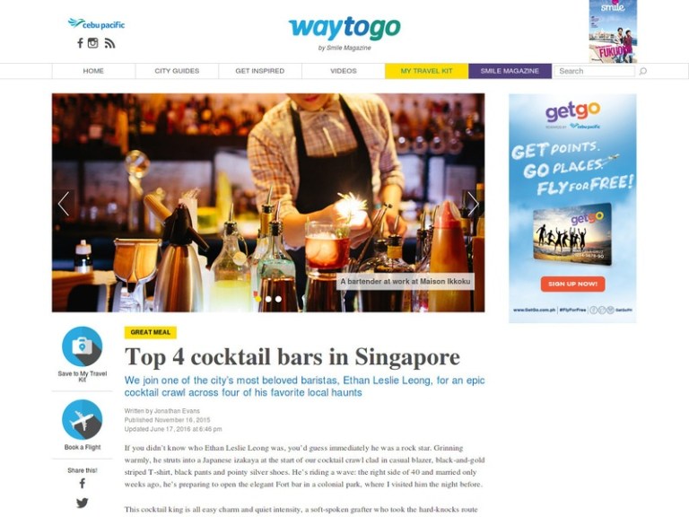 October 12, 2018November 17, 2018 Smile: Singapore cocktails A whistle-stop tour of Singapore’s finest cocktail joints in the company of one of the scene’s leading lights, Ethan Leslie Leong CLICK ON IMAGE FOR THE LINK TO THE ARTICLE. Share this: Click to share on X (Opens in new window) X Click to share on Facebook (Opens in new window) Facebook Like Loading... Related